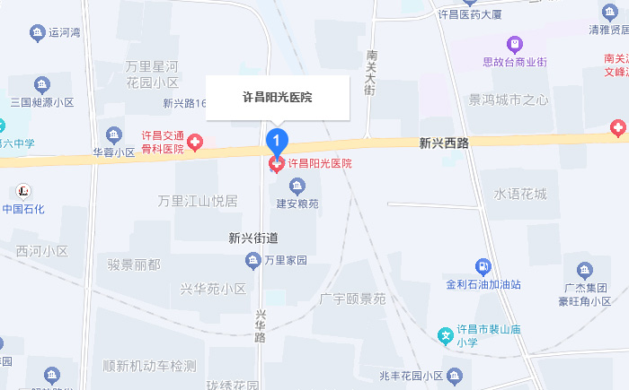 許昌市新興西路與興華路交叉口東南角(南立交 原縣糧局),許昌陽(yáng)光男科醫(yī)院擅長(zhǎng)診治前列腺疾病,功能性障礙,生殖感染,包皮過(guò)長(zhǎng)、包莖等男科疑難病、常見病等。